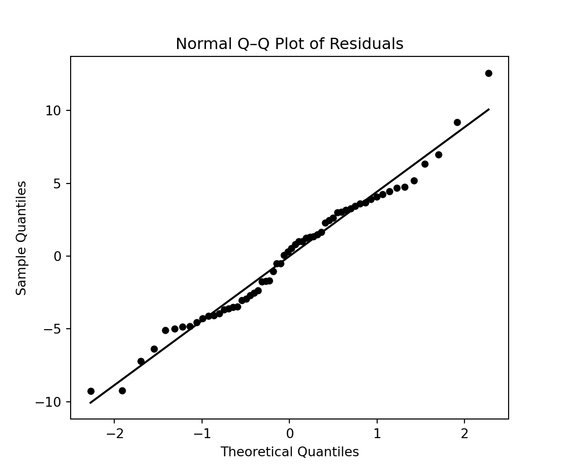plt.title("Normal Q–Q Plot of Residuals")